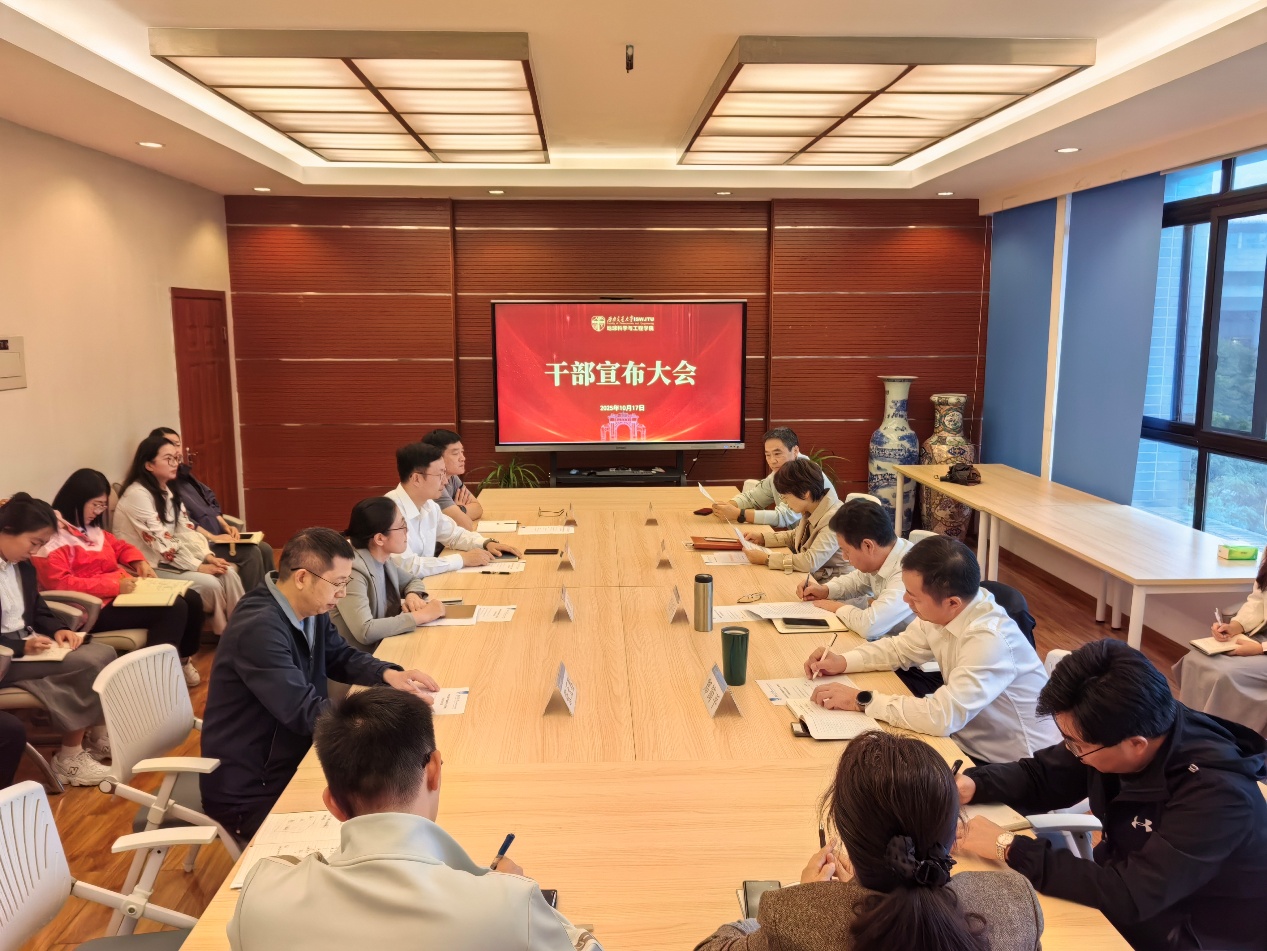 10月17日上午,地学学院在X4531会议室召开干部宣布会议。学校党委组织部副部长何诣寒出席并讲话,学院领导班子成员、科职干部、学工组全体教师参加会议。会议由学院党委书记郑简平主持。
