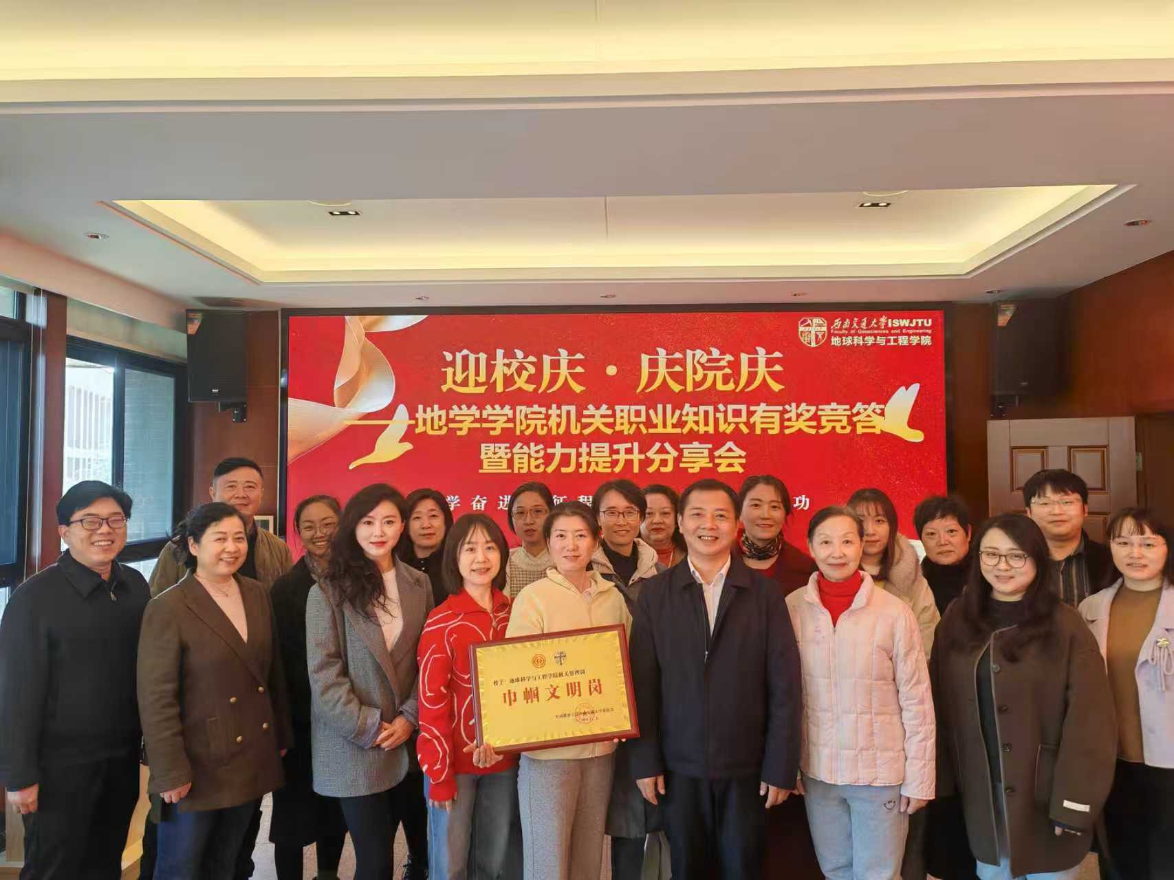 为迎接130周年校庆,庆祝学院成立15周年,进一步提升机关女职工职业素养与业务能力,近日,地学学院机关以“地学奋进新征程,巾帼聚力建新功”为主题,以学促干、以赛赋能,成功举办职业知识有奖竞答暨能力提升分享会。学院党委书记郑简平,校工会副主席王轶、校工会组织女工办公室陈秀梅,及学院机关全体职工参加活动。