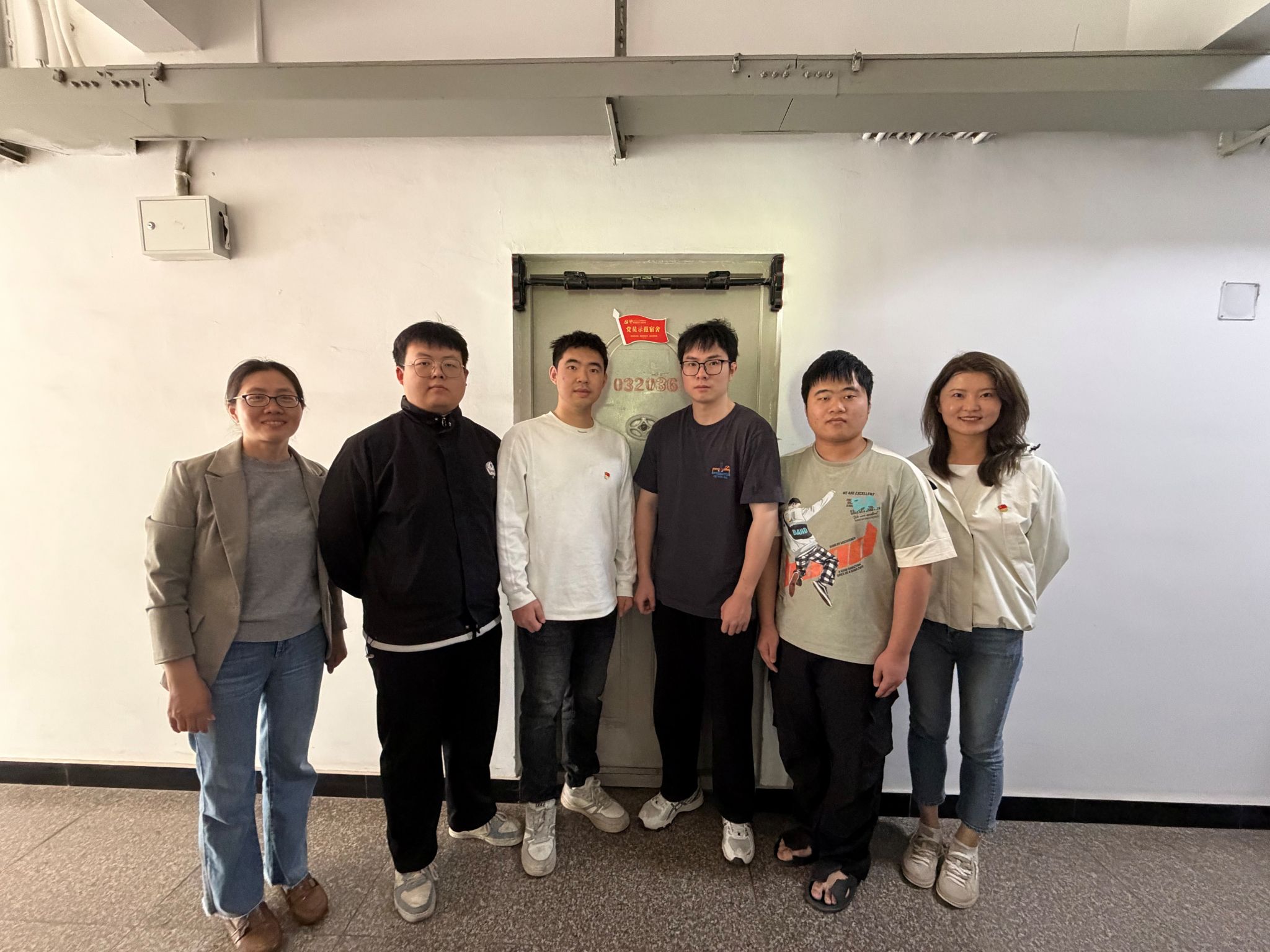 随后,曾洁老师、何梦超老师及学院学工组老师来到学生宿舍区,为首批党员先锋宿舍代表逐一悬挂“党员先锋宿舍”标识牌。鲜红的标识牌醒目亮眼,既彰显着党员的光荣身份,也承载着示范引领、服务同学的郑重责任,标志着地学学院党员先锋宿舍创建工作从倡议部署正式转入落地践行阶段。