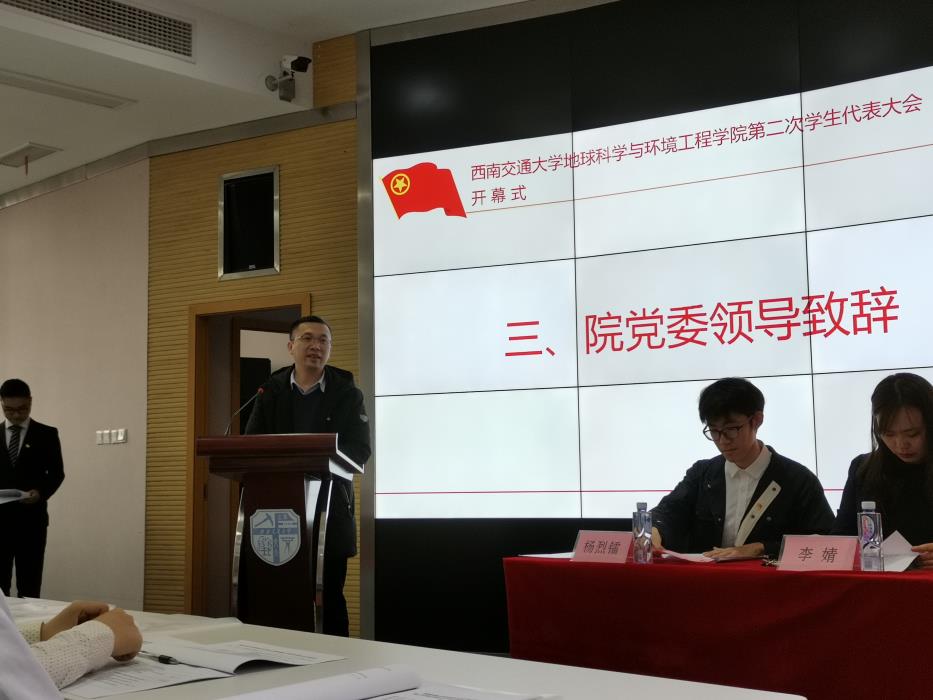 地球科学与环境工程学院第二次学生代表大会于X4243召开。本次大会应到代表共50人,因病、因事请假代表2人,实到代表48人。学院党委副书记傅尤刚同志,学院团委书记周青同志,学院团委副书记翟琦同志、杨都强同志、李婧同志、李国欣同志、杨烈镭同志,校会副主席王海旭同志,以及48名学生代表出席大会开幕式。开幕式由地学学院学生会严榆凡主持。