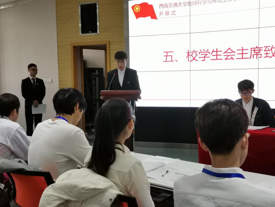 地球科学与环境工程学院第二次学生代表大会第一次全体会议。宣读《JVID