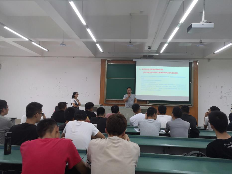 2019年9月12日下午,地球科学与环境工程学院于X4352举办2020届毕业生考研暨就业动员大会。参加大会的有地学学院党委副书记傅尤刚,本科2016级辅导员翟琦、谷思文,2016级全体本科生。本科2016级辅导员翟琦主持本次动员大会。