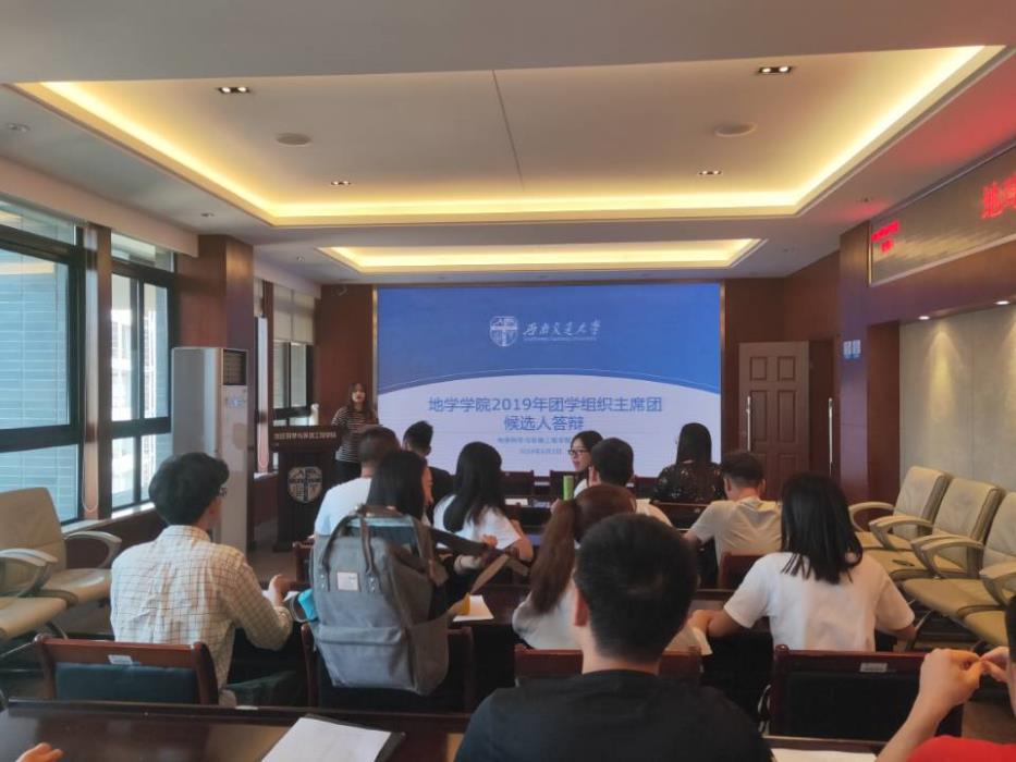 6月3日晚,地学学院2019年团学组织主席团候选人答辩于X4520会议室举行。地学学院学生会指导老师李国欣,青年志愿者协会指导老师李婧,地新传媒指导老师翟琦,学生会、青协、传媒现任主席以及新一届主席团候选人参加此次答辩。
