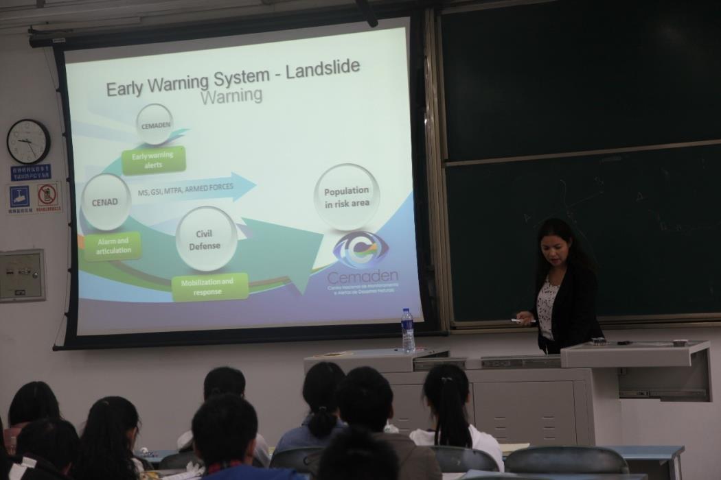 学生进行了专题讲座;之后Aline Freitas da Silva教授就“Landslides Risk Mapping”这一主题做出了精彩汇报。此次讲座由丁明涛教授主持。