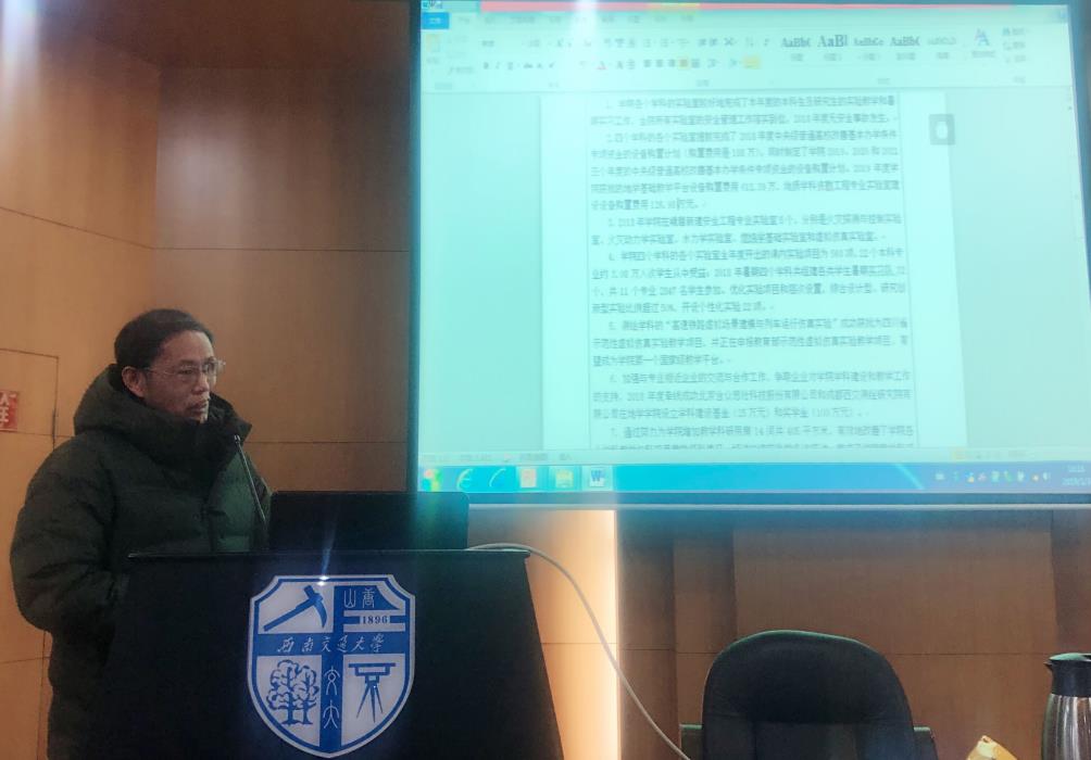 201913日,地球科学与环境工程学院于图书馆二号报告厅召开2019年第一次全院教职工暨中层领导干部述职大会,参加会议的有学院党政领导班子,全体教职工。大会由学院党委书记王齐荣主持。