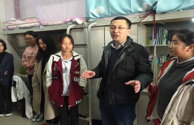 在宿舍检查过程中,傅尤刚还强调了要以寝室为基,班级为根,学习为本,加强学风班风建设。同时以地83校友奖学金为例,希望同学们能够传承校友的优良传统,在大学增长真知识,练就真本事。同时询问了学生期中考试、高等数学、线性代数等课程的上课及考试情况,提醒同学们早做准备,为接下来的英语四级考试、期末考试打下基础。