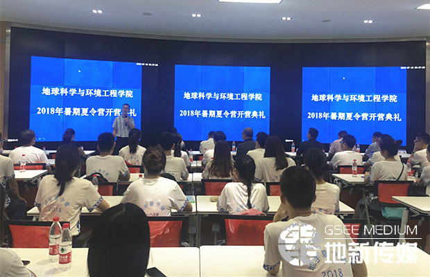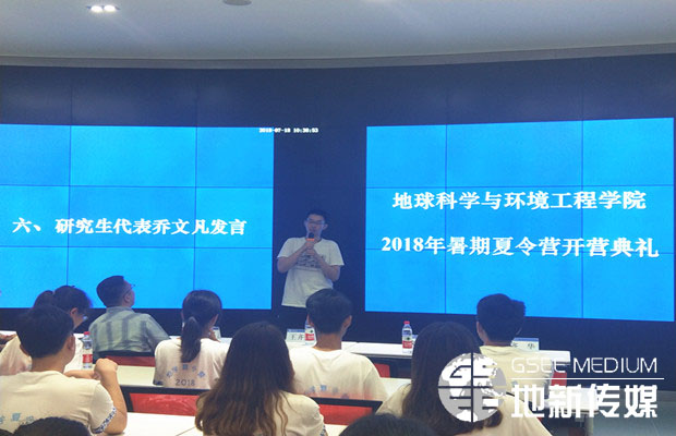 7月18日,地球科学与环境工程学院2018年暑期夏令营开营典礼在X4243多媒体报告厅举行。参加典礼的有地学学院院长刘国祥、党委书记王齐荣、副院长齐华、测绘遥感信息系系主任朱军教授、环境科学与工程系系主任赵锐教授、副系主任龚正君教授、消防工程系副系主任林鹏副教授、地质工程系主任助理廖昕副教授,以及2018年暑期夏令营44位来自全国各地的优秀大学生,学生工作组相关辅导员老师。开营典礼由地学学院党委副书记傅尤刚主持。
