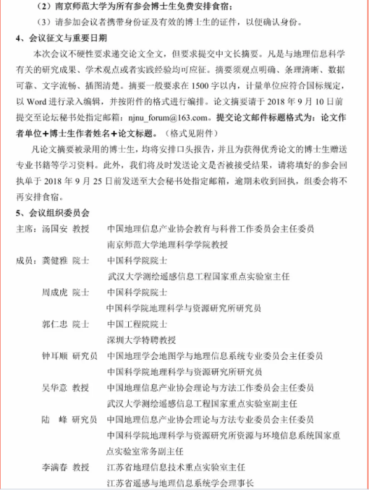 第八届“全国地理信息科学博士生学术论坛” 大会1号通知