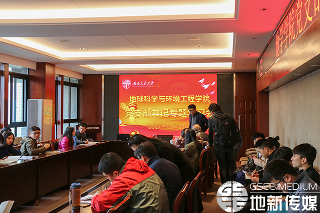 11月30日,地球科学与环境工程学院于X4520召开党支部书记专题学习会。本次学习会由地学学院党委书记王齐荣教授、党委组织部部长韩旭东主讲。地学学院党委委员刘冠军、冯丽梅等学院领导及所有学生党支部书记参加此次会议。