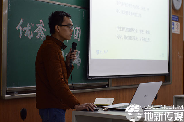 1122日晚由地学学生会学习部举办的优秀宣讲团经验交流会-测绘篇在于X4153开展。此次经验交流会邀请2014级优秀学生段珂珂2014级优秀学生胡鑫两位主讲,2017级辅导员姜永杰、2017级测绘一班、测绘二班、测绘三班、测绘四班、测绘六班本科生参加讲座。
