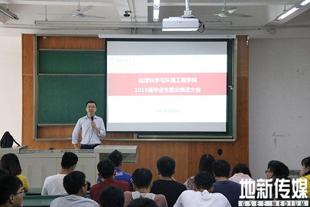 9月19日下午一点,地球科学与环境工程学院于X4350教室举行毕业生就业推进大会。本次会议由地学学院党委副书记傅尤刚和本科2017级辅导员王静雅主讲,JVID