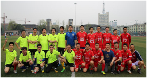 第五届教职工足球比赛(五人制)”将于4月初开赛。为了积极备战比赛,学院教职工足球队的队员们利用清明小长假自发组织进行足球训练。经与蒲江县体育局联系,4月2日下午14:30至16:00,在蒲江县体育中心,学院教职工足球队与蒲江县代表队进行了一场十一人制的足球对抗赛,经过一番激烈的对抗,最终双方4:4握手言和。赛后,学院足球队又进行了五人制足球赛的技战术训练。