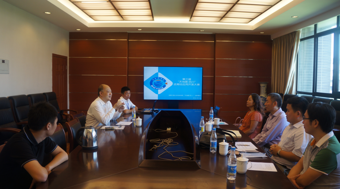 犀浦校区“天地图•四川+ 创新基地”举行,出席本次培训会的专家有四川省测绘地理信息局基础地理信息中心党委书记李忠良、四川省测绘地理信息局基础地理信息中心工程中心主任曹振宇、四川省测绘地理信息学会地图制图与GIS专业委员会秘书刘学玉、四川省基础地理信息中心平台事业部部长任春雷和JVID