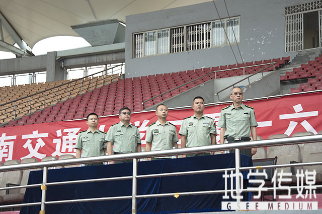 2016级本科生军训开训仪式在北区主体育场拉开帷幕。学生处副处长、军训团副政委陈勇,党委人民武装部副部长刘勇以及担任本次军训任务的武警四川总队成都市支队四大队各位领导均出席本次开训仪式。本次军训,地学学院男生在二十一及二十六连,女生所在连队为七连。