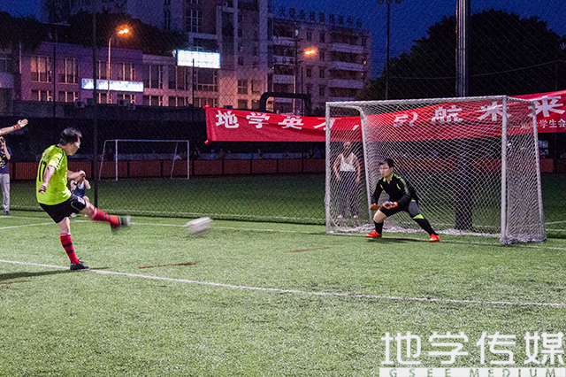 在先失一球,开局不利的情况下,18号队员周林松接队友妙传,把握机会大力抽射破门,将比分扳平。此后,比赛进入白热化,双方均有多次破门机会,但终场的哨声让比分定格1:1,双方握手言和,同时,也将比赛带入了更加刺激而残酷的点球大战,最终地学以点球2:3惜败,与冠军失之交臂,获第四届“同冠杯”亚军,地学学院荣获最佳组织奖。