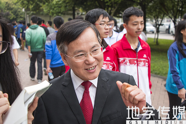 随后,徐书记对学院的参赛选手们表达了殷切希望,他说到:“希望咱们地院学子在赛事中取得好成绩!并且在将来能够再接再厉,变得更加优秀!”。此外,当谈及“年轻的”地学学院的发展情况时,他讲到:“的确,刚才的讲词中也用到了‘年轻的’修饰我们地学学院,但其实我们地院的测绘等专业已经历史悠久,并不年轻,拥有相当深厚的积淀。但我们的地学学院要做到面向未来,成为国际化的、领先的专业学院还要将近十年。”