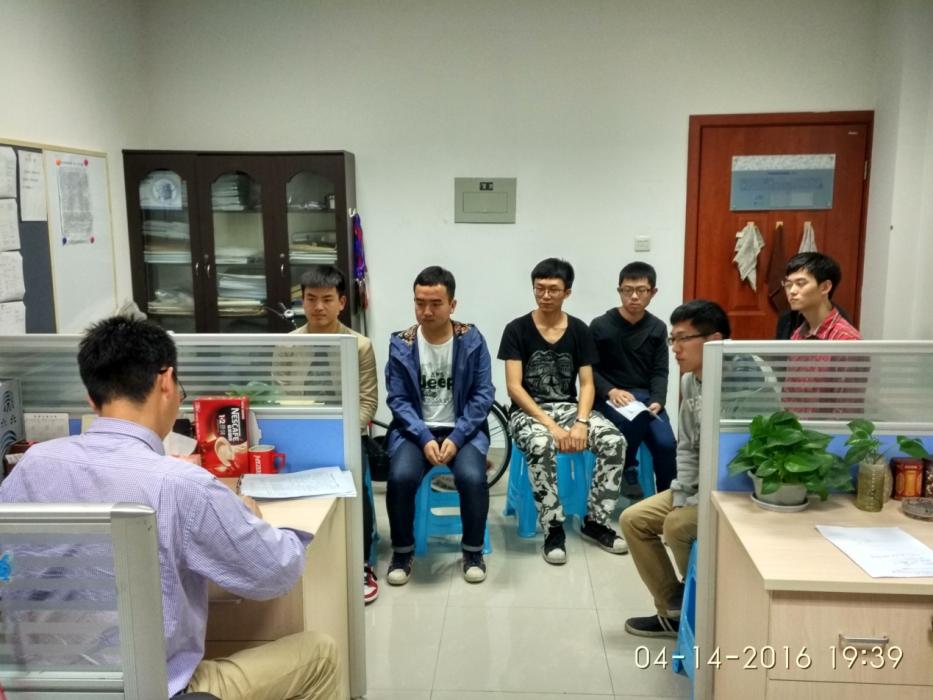 2016年4月14日晚上7点,测绘系2016年本科毕业论文中期检查专家面谈工作在X4546、X4433、X4431举行。检查工作邀请到测绘、地信及遥感三个研究方向的教师袁林果、周乐韬、黄泽纯及慎利进行现场指导工作。专家面谈采取一对一或一对多的灵活形式,专家从论文进展、外文翻译、指导纪要、程序编写等方面对每位学生进行提问,较好地掌握了学生论文的进展情况,对进展缓慢的学生论文,提出了限期整改的要求。此次专家面谈工作较好地保证了我系本科毕业论文的质量。
