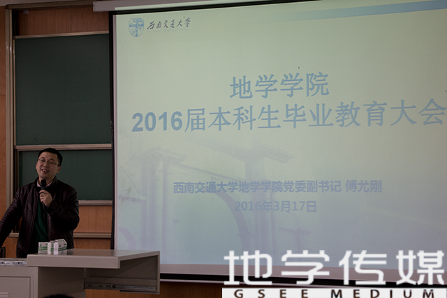 3月17日下午两点,地学学院在X4359召开2016届本科毕业生教育大会,本次大会由地学学院党委副书记傅尤刚老师在主讲。大会旨在动员JVID