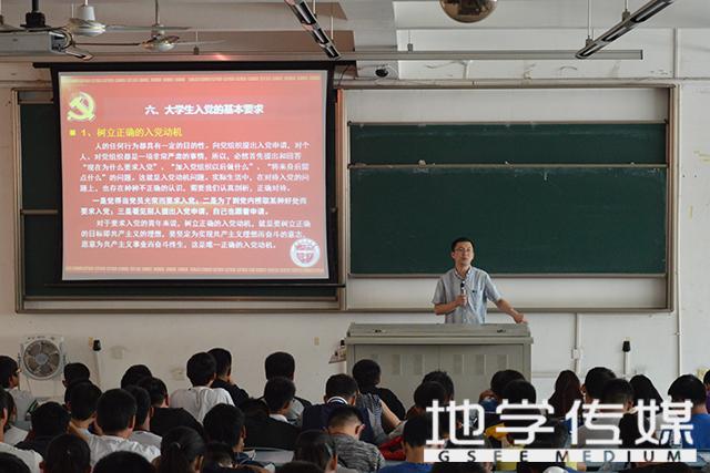 9月17日14点整,在X2321教室,地球科学与环境工程学院对2015级新生进行了一场新生入学教育——由地学学院党委副书记傅尤刚主讲的“入党知识培训”专题讲座。