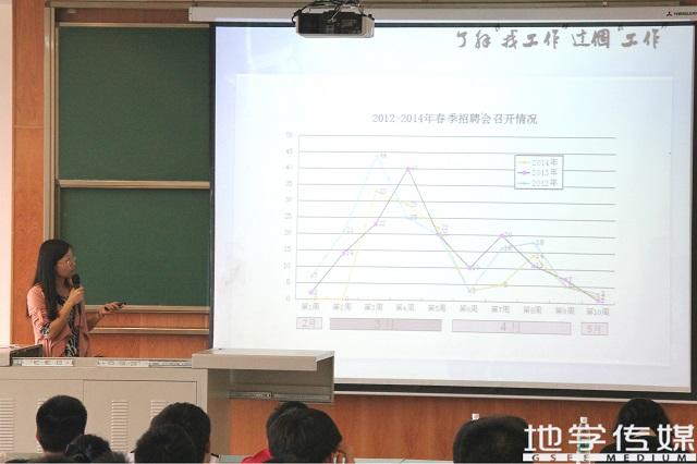 5月21日下午2:30,地学学院2016届毕业生就业指导讲座在4359教室隆重举行。就业处指导老师陈曦轶老师和院团委书记周青老师为大家做了“2015就业形势政策解读”和“地学2016届毕业设计职业素养提升之求职途径”两项主题的讲座,旨在介绍先就业政策,帮助地学学院的学生树立正确的价值观,以及求职技能的提升。其中,辅导员闫剑老师、王静雅老师出席了本次讲座。