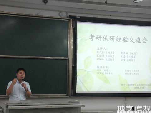 交流会伊始,地学学院党委副书记傅尤刚先从介绍地学学院考研保研的情况、对考研保研精神的认识、大家对考研保研的误区以及需要做的一些准备四个方面展开讲话。傅书记着重强调,大家不能只是一时兴起,而是要考虑清楚这条路是否适合自己。他不希望大家只是随波逐流或者总是受他人影响,抑或选择这条路是为了逃避现实、避免就业。在傅书记看来,考研是追求理想和进步的,是一场历练,希望同学们不要好高骛远,而是要有现实的目标去量力而行。最重要的是要做好时间规划。最后,傅书记对同学们说到:会利用时间的人是聪明的人,考研不是孤军奋战而是团队合作,希望同学们们能够放开自己,多进行他人进行经验分享和交流。