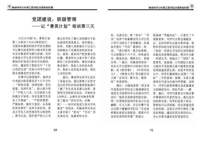 地学学院第三期“菁英计划”团干培训简报