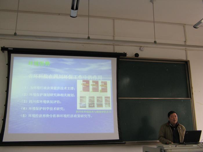 讲座开始前,副院长欧阳峰教授简要介绍了叶宏院长的学术成就,并和大家一起对叶院长的莅临表示了热烈的欢迎。随后,叶宏研究员在热烈的掌声中开始了精彩的讲座。叶宏研究员首先介绍了全国和四川省的环境形势,然后结合三个案例深入介绍了“不退化观点”提出的背景及相关的三个开放性讨论问题,提出了如何在我国实施环境质量不退化战略的设想。结合当前城市垃圾处理厂、变电站、手机基站、公立私立医院餐饮项目、市政道路建设等社会公益性项目实施困难及一般建设项目实施受阻的现状,叶宏研究员提出了“环境影响评价中的心理问题”,从避邻心理、从众心理、恐惧心理、逆反心理、地点依赖等方面分析了其产生原因,提出了可能的解决办法。随后,结合危险废物鉴别标准要求和污染物排放和所处水域的功能矛盾2个案例,叶宏研究员分析了技术规范与标准的矛盾问题,探讨了解决矛盾的思路。