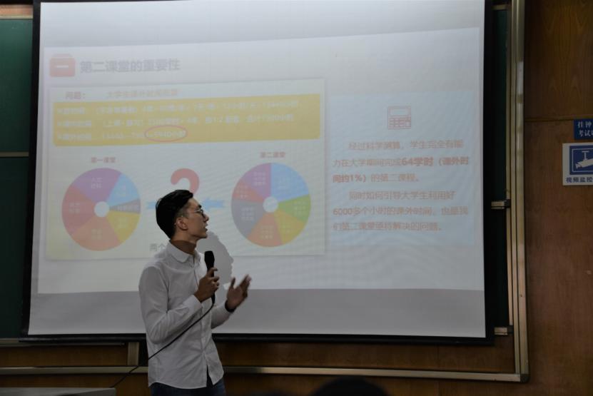 吴昊具体介绍了第二课堂有关内容,从第二课堂成绩单制度、交大特色、常见问题解答等方面进行阐述,并以有奖问答及风趣幽默的语言带来热烈的氛围。