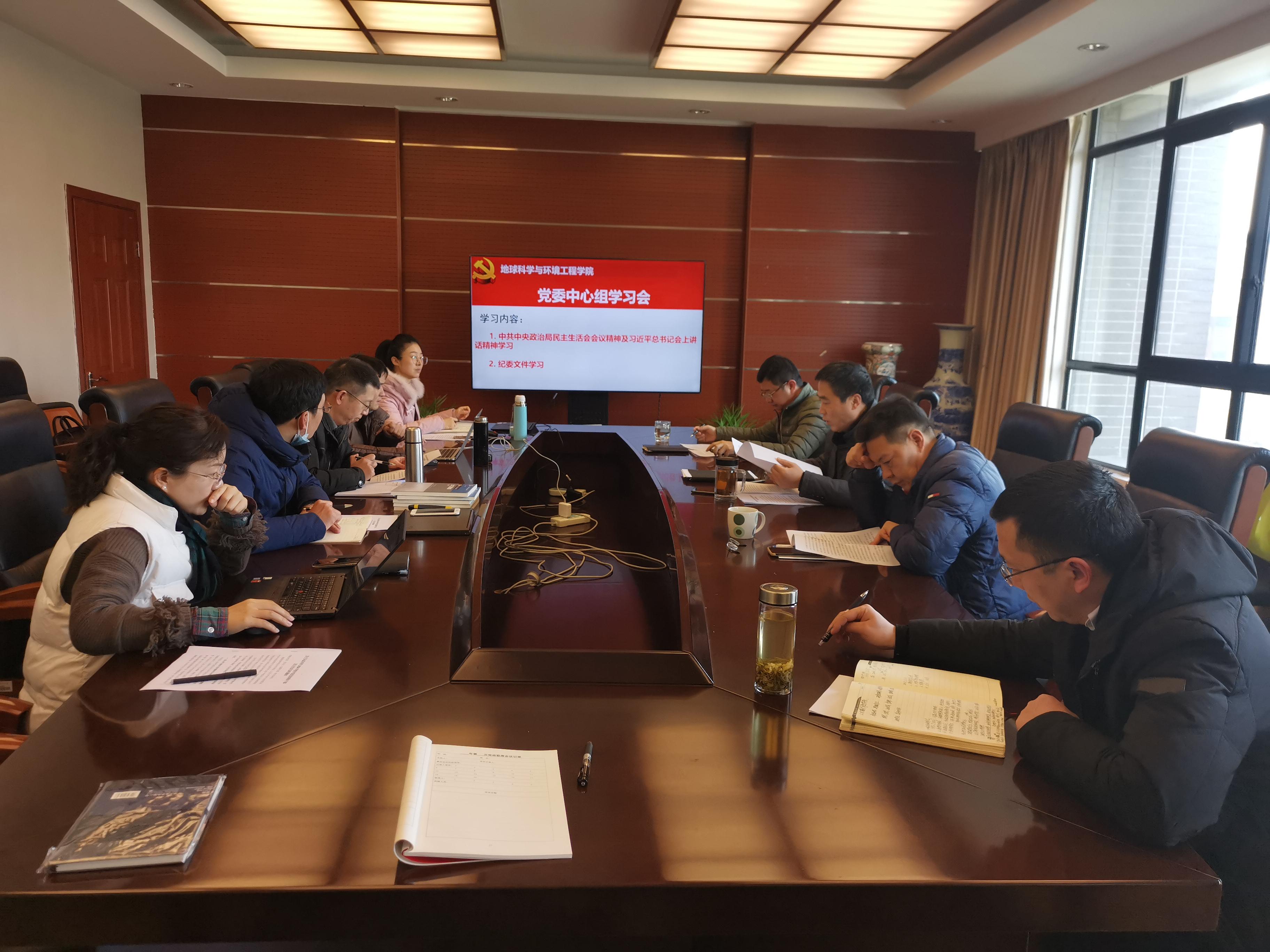 2021年1月4日下午,地学学院在X4531召开党委中心组(扩大)学习会。会议由学院党委书记关秦川主持,地学学院党委委员、党员领导干部、班子成员等参加会议。