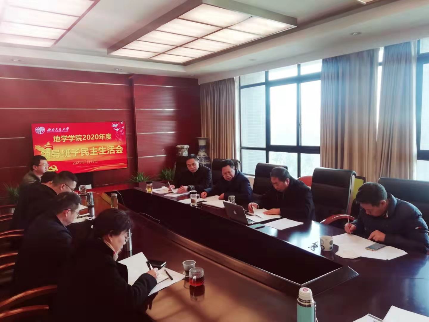 领导班子以“认真学习贯彻习近平新时代中国特色社会主义思想,加强政治建设,提高政治能力,坚守人民情怀,夺取决胜全面建成小康社会、实现第一个百年奋斗目标的伟大胜利,开启全面建设社会主义现代化国家新征程”为主题,按照学校党委《关于认真开好2020年度中层党员领导干部民主生活会的通知》的相关要求,围绕党章、党的十九届五中全会精神,学习《中共中央关于加强党的政治建设的意见》、《关于巩固深化“不忘初心、牢记使命”主题教育成果的意见》和中共教育部党组《关于加强高校党的政治建设的若干措施》等文件精神,在深化学习研讨、广泛征求意见、开展谈心谈话的基础上,地学学院党委于2021年1月15日下午14:30在犀浦校区X4531会议室召开了2020年度中层党员领导干部民主生活会。