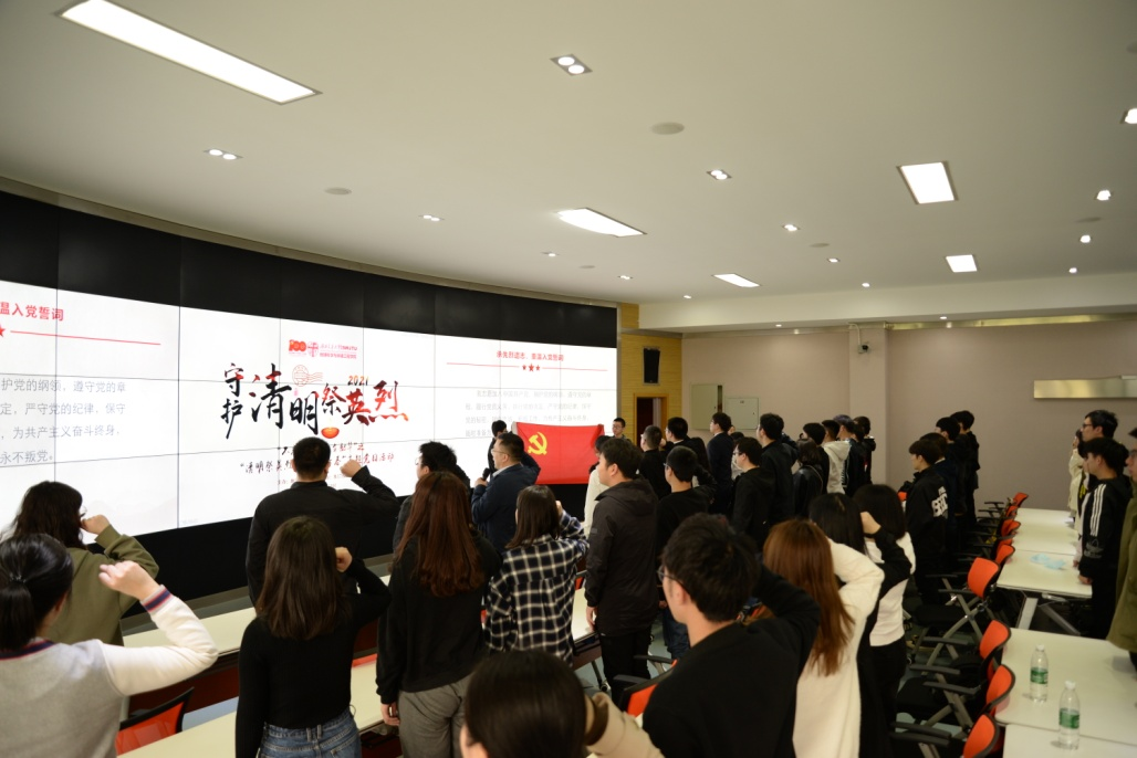 承先烈遗志,重温入党誓词。傅尤刚领誓,全体党员面向党旗,庄严宣誓,重温入党初心,坚定承先烈遗志的决心。
