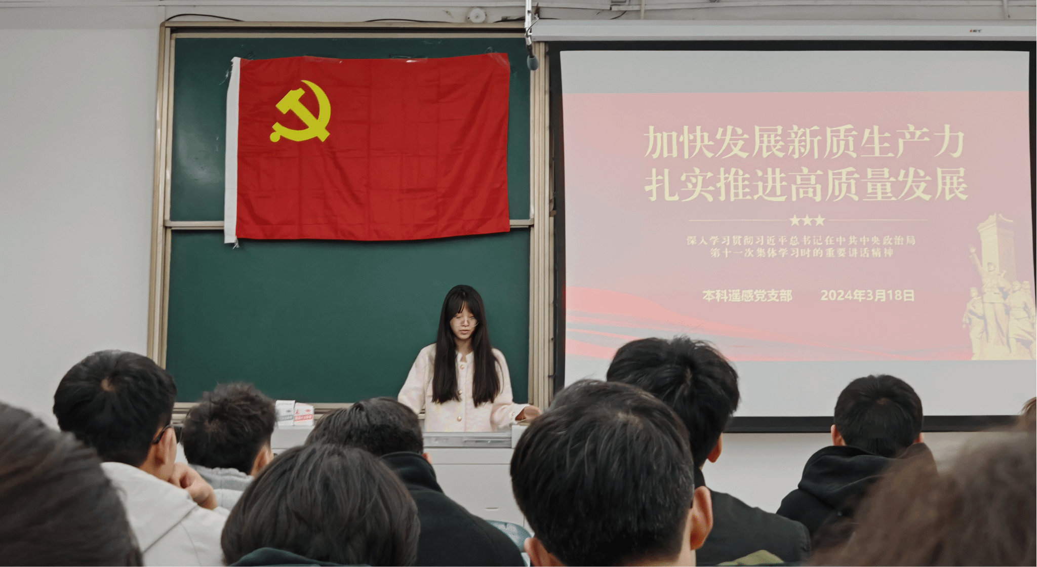 首先,党支部书记田博瑶同志带领大家深入学习贯彻习近平总书记在中共中央政治局第十一次集体学习时的重要讲话精神。习近平总书记在主持学习时强调,必须牢记高质量发展是新时代的硬道理,全面贯彻新发展理念,把加快建设现代化经济体系、推进高水平科技自立自强、加快构建新发展格局、统筹推进深层次改革和高水平开放、统筹高质量发展和高水平安全等战略任务落实到位,完善推动高质量发展的考核评价体系,为推动高质量发展打牢基础。他还强调发展新质生产力是推动高质量发展的内在要求和重要着力点,必须继续做好创新这篇大文章,推动新质生产力加快发展。田博瑶同志指出,这些重要讲话精神为我们指明了前进方向,要求全体党员深刻领会其中的核心要义,将其内化于心、外化于行,为推动高质量发展贡献自己的力量。