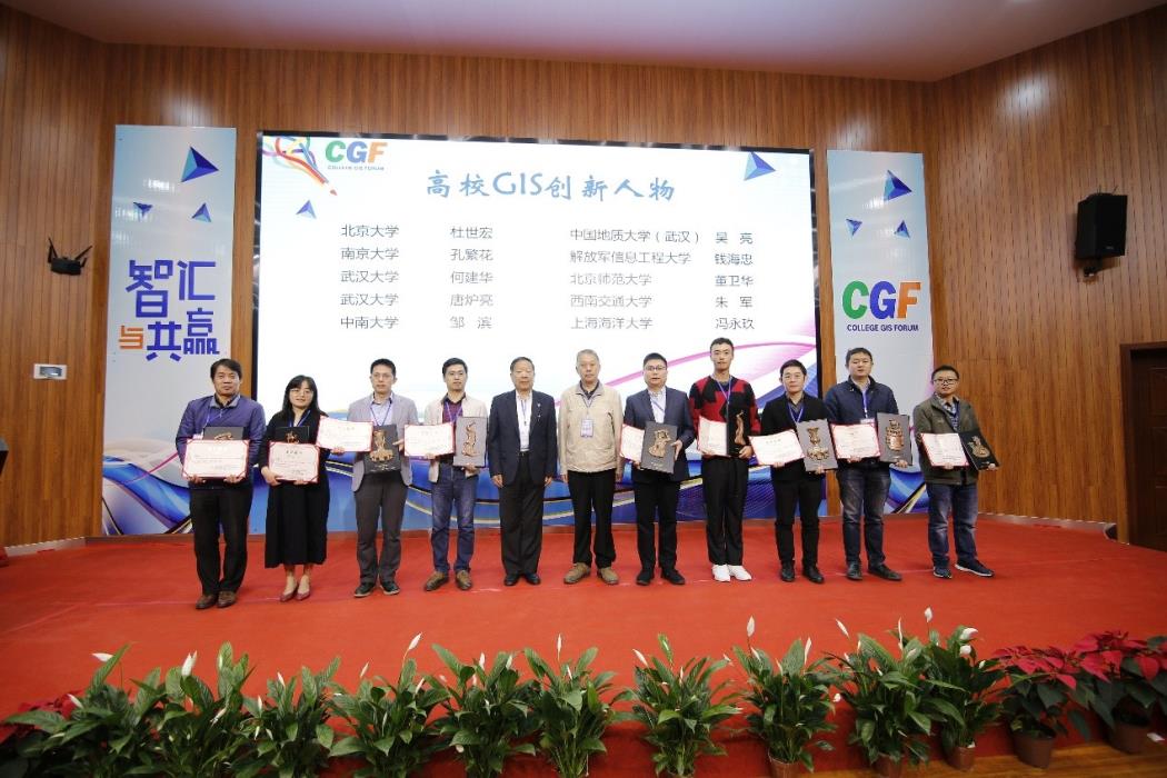 Professor Jun Zhu won the "GIS Innovative Person" Award, and the Ph.D. Mingwei Liu supervised by Prof. Qing Zhu won the "GIS Rising Star" award. Professor Qing Zhu and his team members, Dr. Han Hu and Professor Tao Liu also won the " GIS New Prominent" award. Professor Jun Zhu and Dr. Mingwei Liu were invited to give reports on “Disaster Scene Integration Modeling and Visualization Enhancement” and “Full Space Augmented Reality Visualization Engine”.