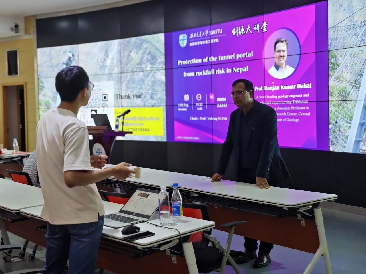 程谦恭教授团队特邀尼泊尔特里布文大学Ranjan Kumar Dahal教授于2023年9月18日上午在犀浦校区X4243会议室开展学术报告。Ranjan教授是尼泊尔地质工程和地质灾害领域著名专家,过去20年来一直从事地震、滑坡和泥石流等地质灾害的研究工作。